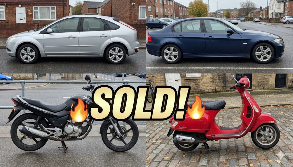 We’re talking cars and motorbikes going for hundreds, not thousands.